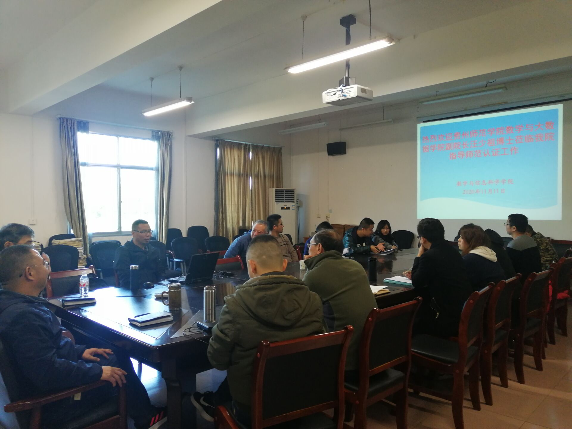 2020年11月11日中午12:40,数学与信息科学学院聘请了贵州师范学院数学与大数据学院副院长汪少祖博士在一教三楼会议室作了数学与应用数学专业师范论证专题会议。数学与信息科学学院党总支书记陈治友、院长顾大刚、党总支副书记冯林安、副院长张牧,党政综合办公室行政人员及全体数学教师参加了此次讲座。