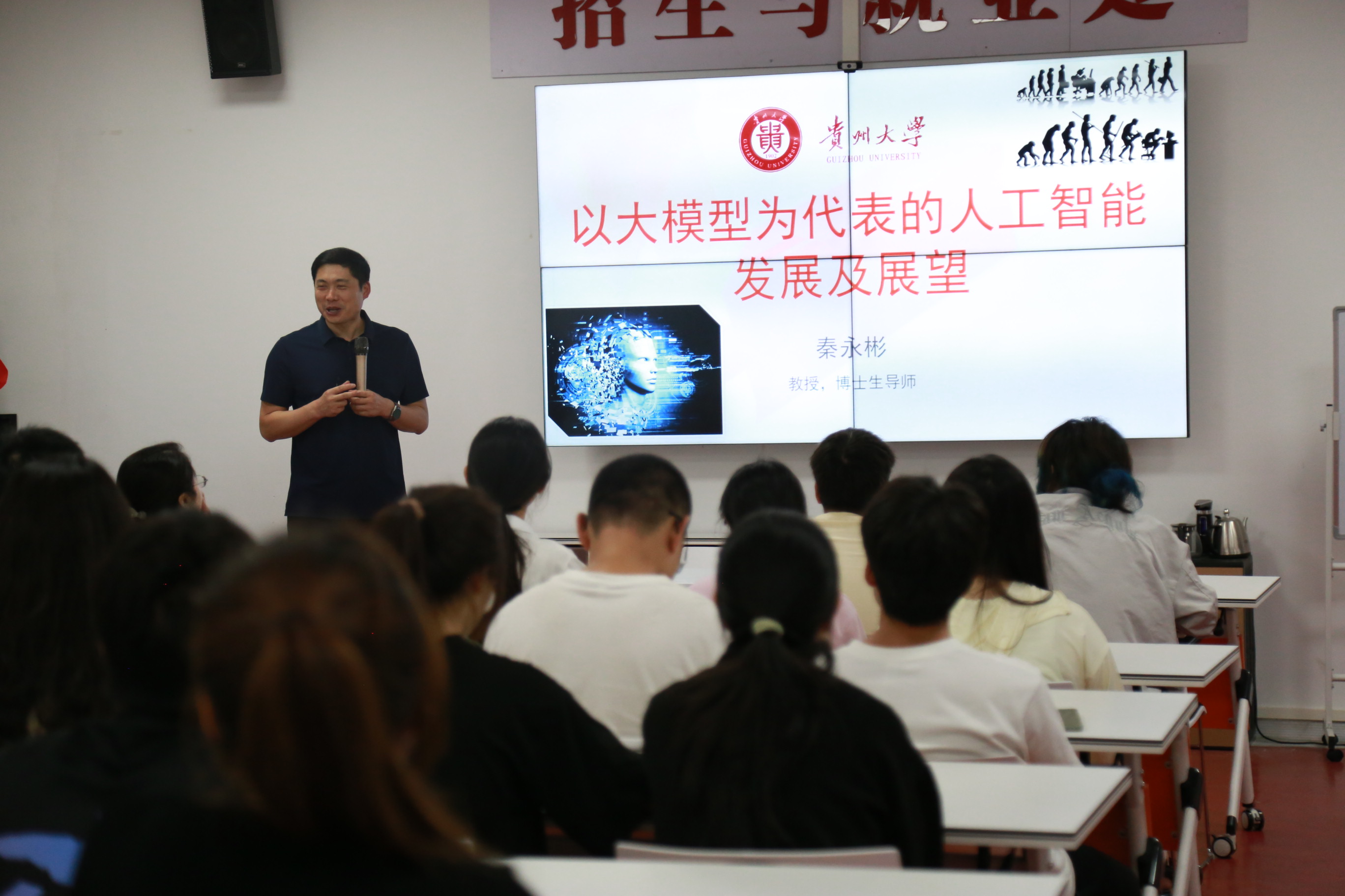 2024年5月27日晚上7点,yl9193永利集团邀请贵州大学计算机科学与技术学院院长、教授、博士生导师秦永彬为学生作学业规划指导讲座。讲座在学生活动中心210宣讲室开展,由学院院长张艳主持,党委副书记陈英姿、yl9193永利集团学生、教师代表参加了本次讲座。