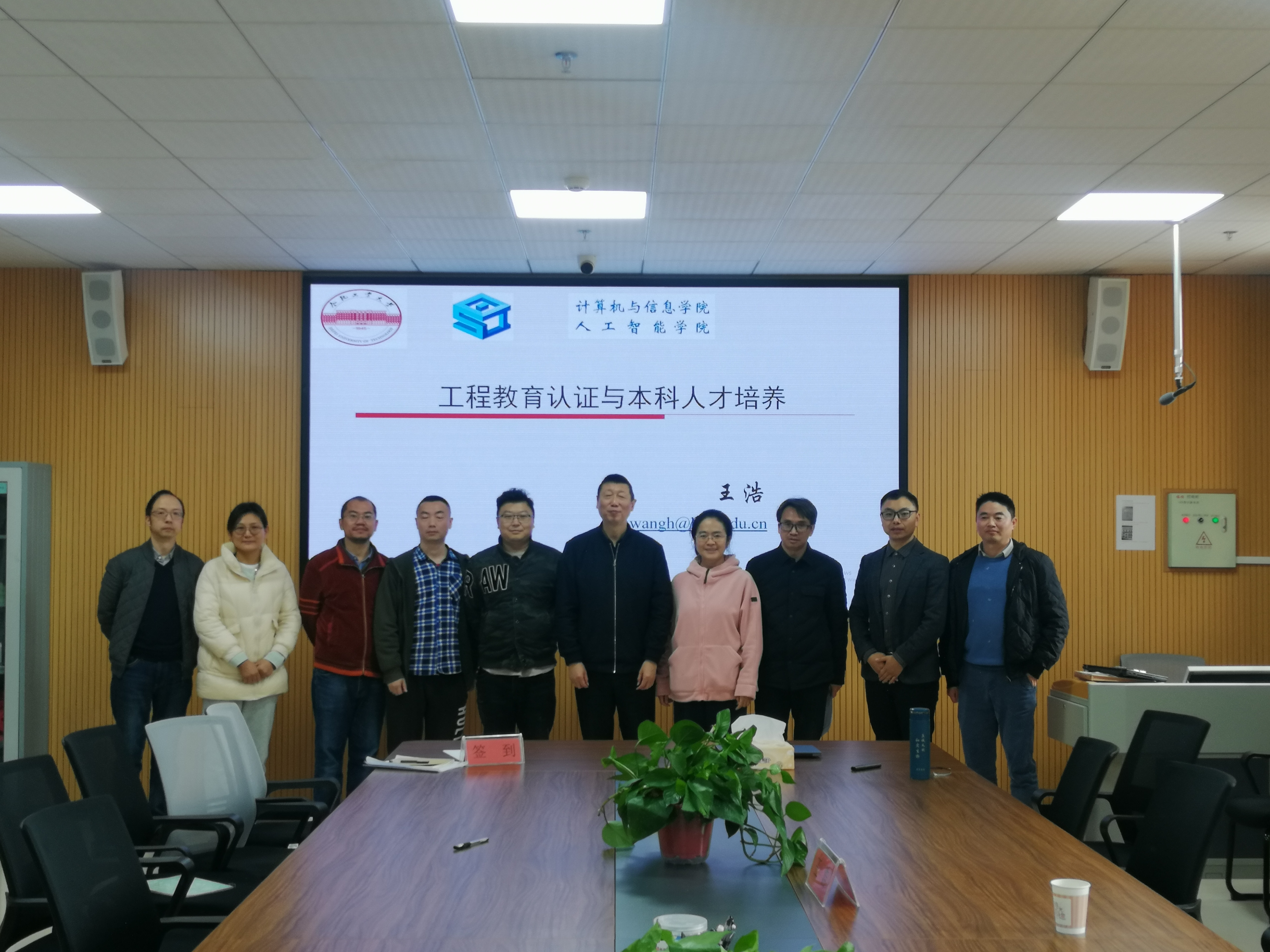 为推进工程教育认证工作,持续深化教育教学改革,提升本科教学与管理工作的科学化、规范化、系统化建设,帮助教师了解本科教学规范,提高人才培养质量,11月22日,yl9193永利集团邀请合肥工业大学计算机与信息学院王浩教授做关于“工程教育认证与本科人才培养”的专题讲座。讲座由yl9193永利集团院长张艳主持,各教研室主任及相关教师参加了讲座。