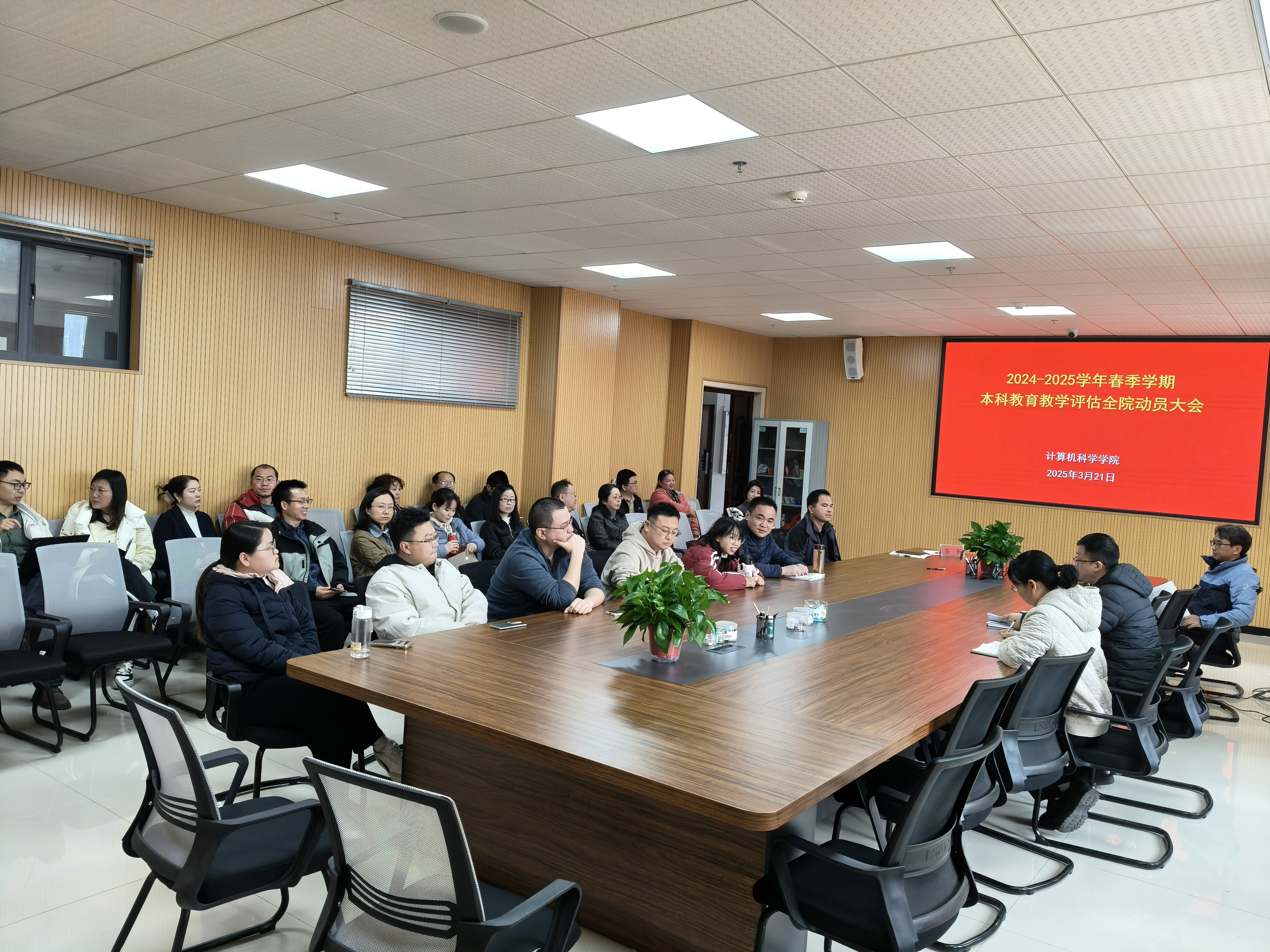 2025年3月21日下午,学院组织召开全体教职工大会暨本科教育教学评估动员部署会,全面落实学校党委关于迎接本科教育教学审核评估工作要求。会议重点传达学习学校本科教育教学审核评估工作部署会议精神,研究部署本科教育教学审核评估、学科专业优化调整、毕业生就业促进等重点工作。学院党委书记龙浩同志主持会议并讲话,副院长欧阳柏成同志作评估指标体系解读,党委副书记陈英姿同志通报2025届毕业生就业工作进展情况。学院党委领导班子成员及全体教职员工出席会议。