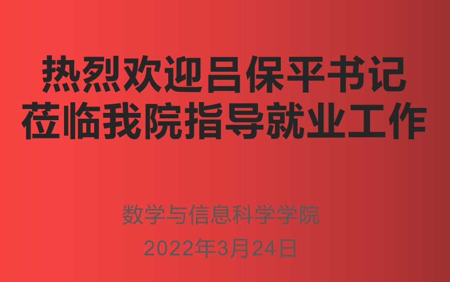 2022年3月24日下午,永利集团党委书记吕保平在党委办公室主任梁成浒、副主任田梅及招生就业处副处长张瑞等陪同下,到数学与信息科学学院开展调研,指导2022届毕业生就业工作。数信学院党委书记陈治友、院长顾大刚、副院长张牧、就业指导教师和20名即将毕业的学生参加了此次调研活动。