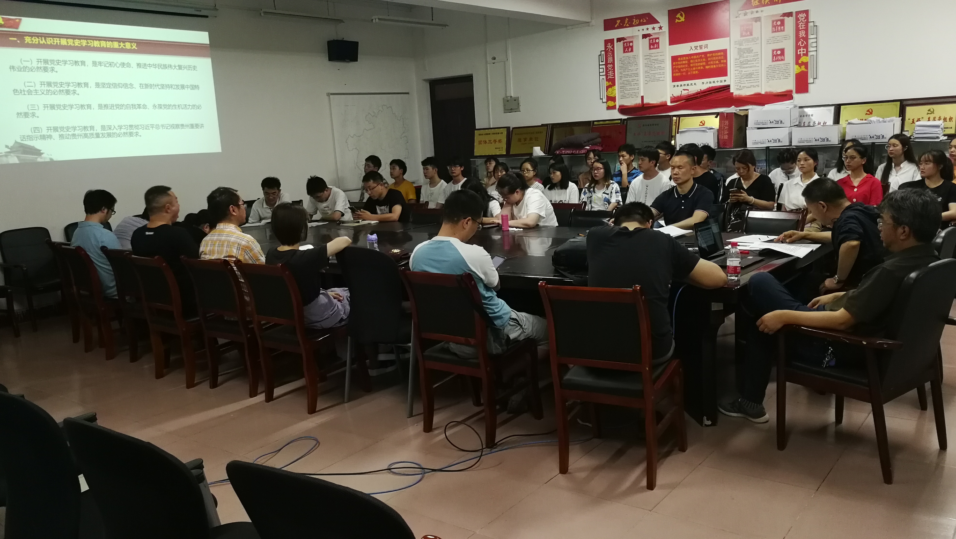 2021年6月18日,数学与信息科学学院全体师生党员在一教三楼会议室集中参与了党史学习教育专题党课的学习。