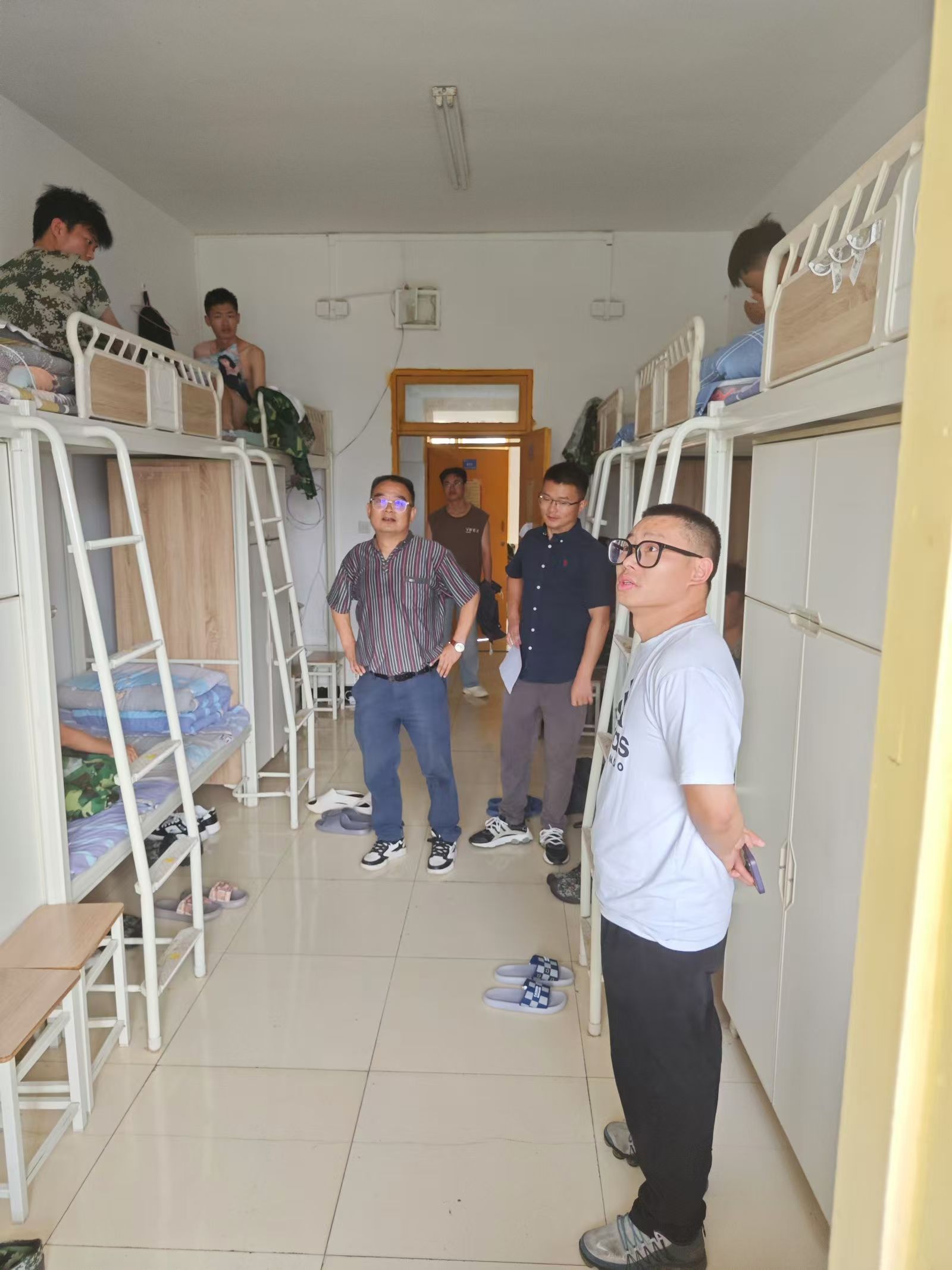 走访活动分为两个小组,各小组按照事先规划的路线,逐一走访了新生宿舍。在走访过程中,工作组仔细查看了新生宿舍的设施情况,包括床铺、桌椅、卫生间等,确保各项设施完好可用;学院领导仔细询问新生们的入学感受、生活适应情况以及对学校、学院的意见和建议。